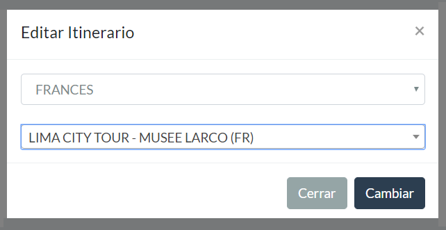 Cambie el nombre del itinerario y presione el boton Cambiar