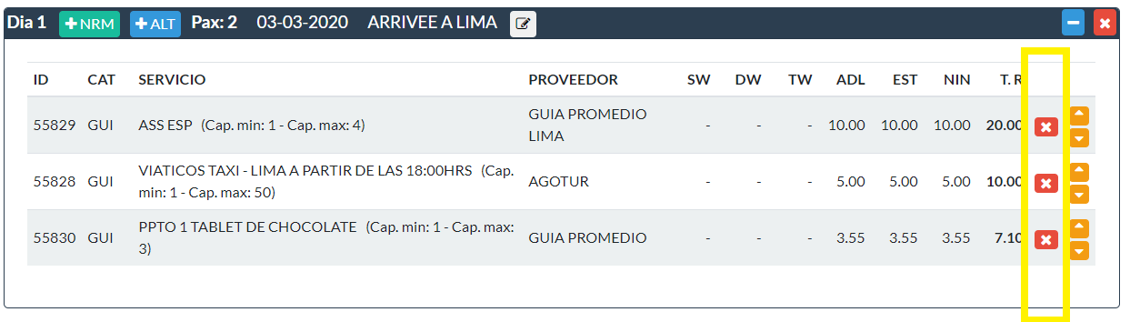 Cuando se desee eliminar una tarifa reservada para un día específico se puede lograr siguiendo los pasos: