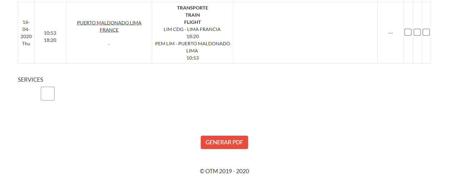 en la parte inferior de la pagina, nos permitira generar un PDF é incluir una Columna Servicios