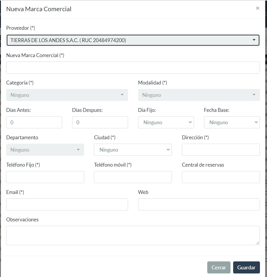 Si desea puede establecer con cuantos dias de anticipacion ó dias despues se realizara el pago al Proveedor de una Marca Comercial