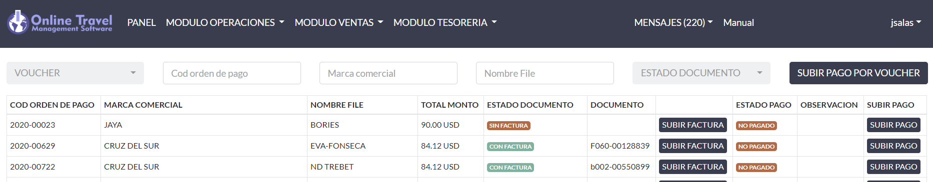 En el Modulo de Cargar Pagos, visualizaremos la lista de Ordenes de Pago,