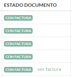 Dentro del módulo de Cargar Pagos, en la lista de órdenes de Pago podremos observar la columna ESTADO DOCUMENTO. Seleccionaremos el botón VER FACTURA