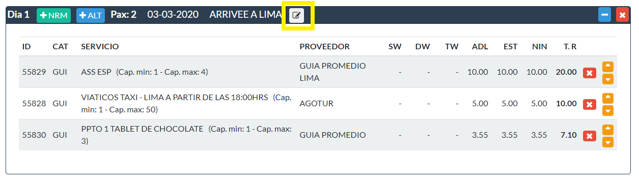 Para editar el nombre de un día correlativo después de haber creado el día puede ser necesario, en caso de un error, y los pasos para rectificarlo son: