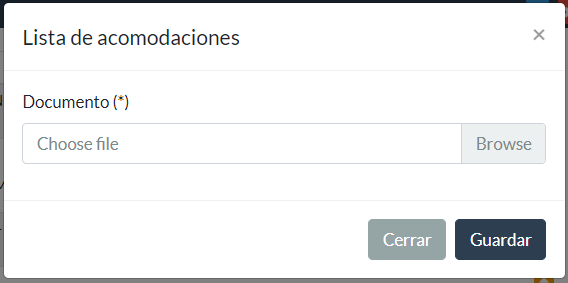 Nos mostrarĂ¡ un formulario en donde podremos subir nuestro archivo del Rooment List.